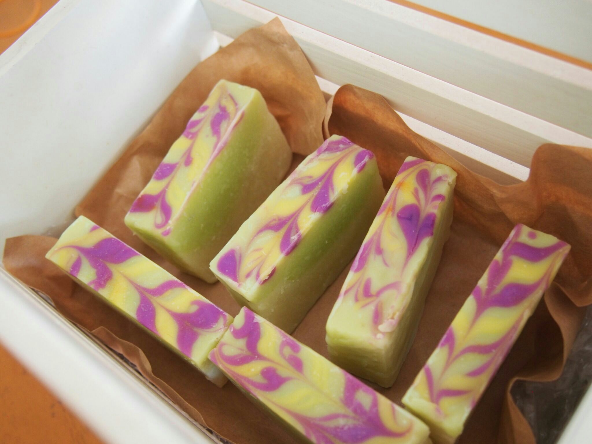 08 July 手作り石鹸 プルメリアの香り 手作り石鹸作ってみました。 7月20日頃から販売開始です。 ご予約も受け付けていますが、6個しかありません。 価格は検討中です。 作るのに2時間半、カットするまで2週間、熟成させるのにもう2週間。合計1ヶ月かかります。 見た目にも楽しんで頂けるようデザインも考えてみました。 ちょっとした贈り物にもいいかと思います。 同じデザインは2度と作れない可能性が大なので、このデザインは1度限りの販売となります。