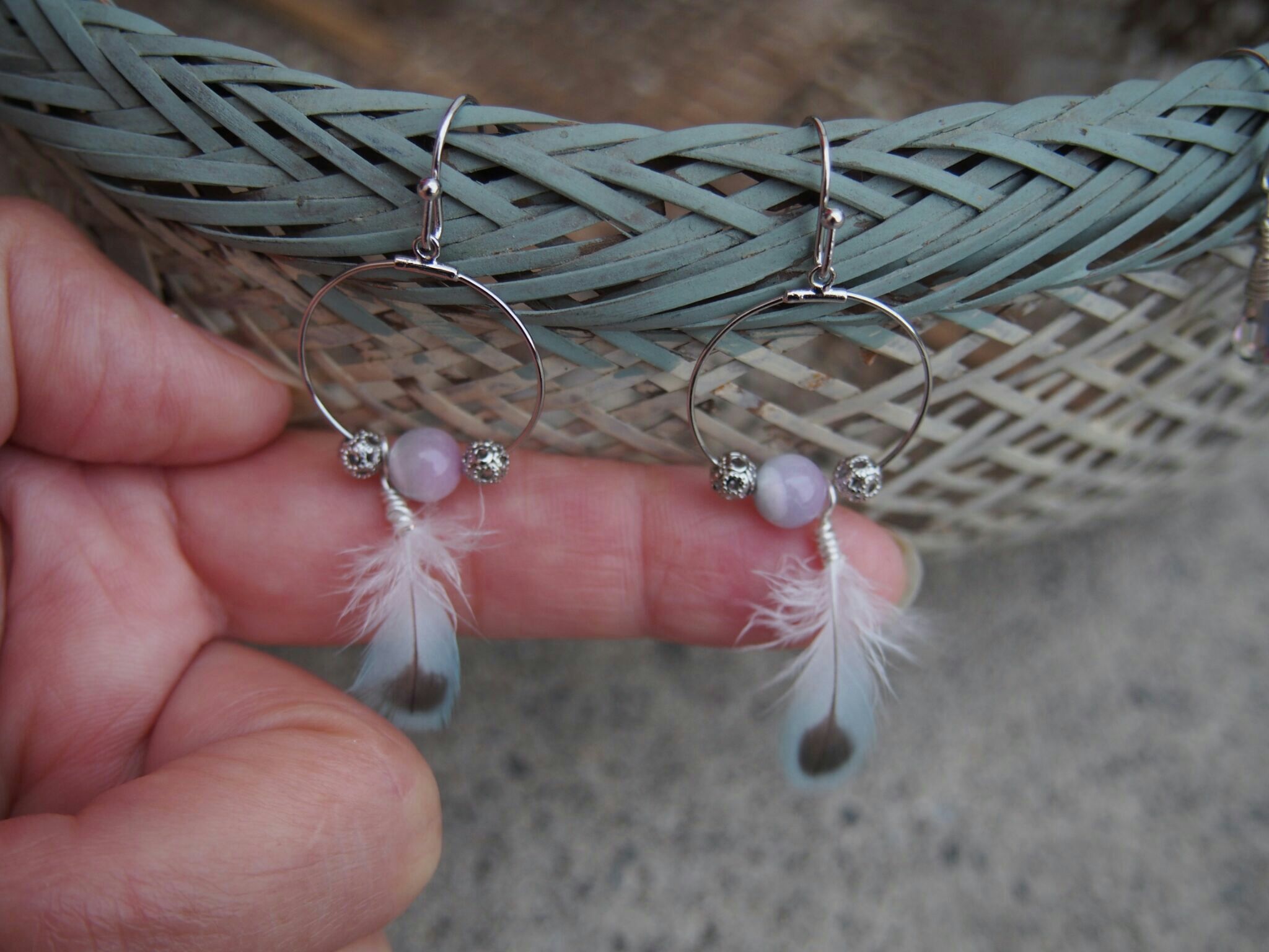 02 November セキセイインコの羽のピアス セキセイインコのブルーの羽を使って作りました。 完全一点物です。 小さな羽を取り付けるパーツが存在しないので手作りパーツを作りました。1700yen(税込み)